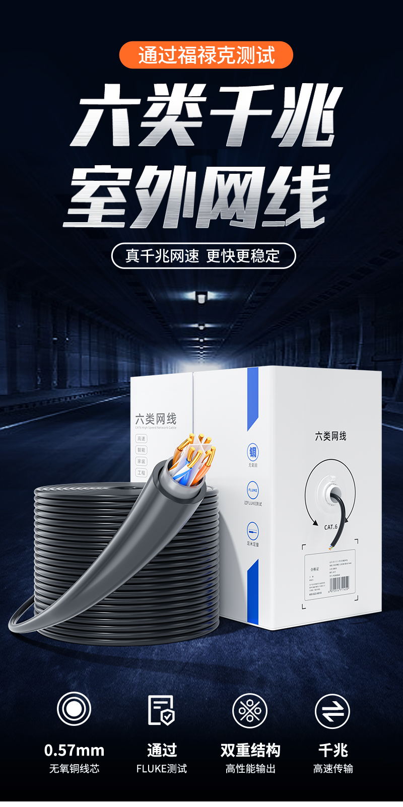 六类非屏蔽阻水网线箱线
